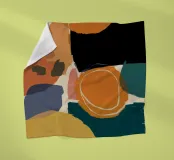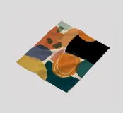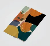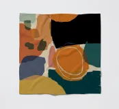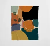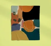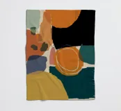 Un'opera d'arte astratta con una composizione calda e invitante di forme organiche sovrapposte in una tavolozza di terracotta, marrone e giallo senape. L'opera è moderna, rilassante e ricca di calore testuale.