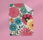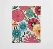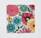 Un campo denso e gioioso di vari fiori stilizzati in una caleidoscopica gamma di colori vivaci. L'illustrazione è una celebrazione della diversità e della bellezza della natura, resa in uno stile grafico e allegro.