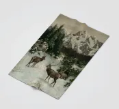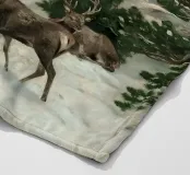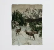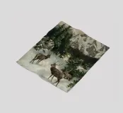 Un suggestivo motivo invernale: tre cervi si ergono maestosi in un paesaggio montano innevato, con abeti e cime sullo sfondo. I colori naturali e l'atmosfera tranquilla rendono questo disegno perfetto per gli amanti della natura e degli animali. Che si tratti di un murale, di un cuscino, di una tazza o di un poster, questo motivo porta il romanticismo invernale della fauna selvatica, l'eleganza e la tranquillità in ogni casa.