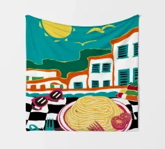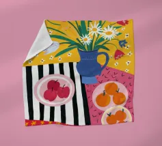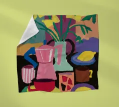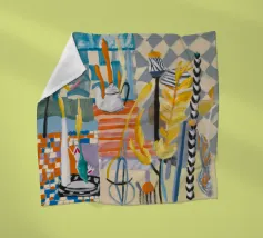 Un collage vibrante e caotico di motivi contrastanti, tra cui righe, pois e forme organiche. La gioiosa esplosione di colori e texture crea un'opera d'arte energica e piena di vita.