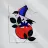 Un uccello colorato con ali blu e rosse è appollaiato su un frutto rosso, accompagnato da foglie verdi. La composizione è vivace, con colori vivaci e forme semplici.
