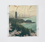 Immergetevi nella pittoresca bellezza costiera di Qingdao, in Cina, con questo accattivante poster digitale. L'opera d'arte mostra la miscela unica di architettura tradizionale e moderna della città, con una maestosa pagoda e un tempio in riva al mare, il tutto incorniciato da vibranti fiori di ciliegio e verde lussureggiante. Le serene acque turchesi e un lontano skyline sotto un cielo nebuloso completano questa scena tranquilla. Le scritte "QINGDAO" e "CHINA" sono elegantemente visualizzate in basso. Questa stampa digitale di qualità superiore, con una risoluzione di 7000x5000 pixel e 300 dpi, offre una nitidezza eccezionale e colori vivaci, perfetti per gli appassionati di cultura e di viaggi.