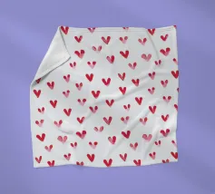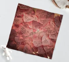 Un filo ornato da ritagli a forma di cuore in varie tonalità di rosso è appeso su uno sfondo scuro. Morbide luci calde illuminano i cuori, creando un'atmosfera romantica per San Valentino.