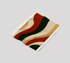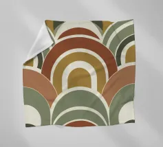 Un'opera d'arte astratta nostalgica con linee curve e fluide in arancione polveroso, giallo, verde salvia, marrone, beige e bianco. Ispirata al design degli anni '60 e '70, aggiunge un caldo tocco retrò a interni moderni, boho o eclettici.