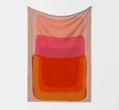 Questa moderna opera d'arte è caratterizzata da giocosi campi di colore arancione, rosa e rosa, che sembrano impilati l'uno sull'altro come cubi. Il design semplice e chiaro crea un equilibrio armonioso tra struttura e leggerezza. I colori vivaci conferiscono al motivo un aspetto allegro e contemporaneo.