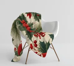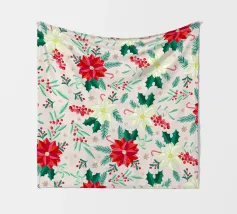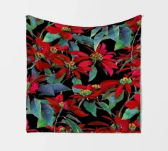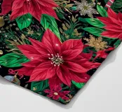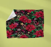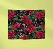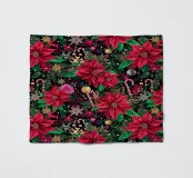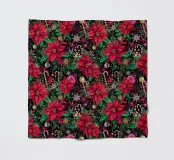 Un motivo natalizio ricco e festoso, caratterizzato da vivaci stelle di Natale rosse, bastoncini di zucchero, ornamenti, rami sempreverdi e accenti dorati su uno sfondo scuro. Questo sofisticato disegno natalizio combina i tradizionali elementi botanici del Natale con un'estetica moderna e lunatica per un elegante look stagionale.