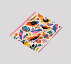 Questo incantevole disegno con uccelli colorati ed elementi floreali in blu, rosa, arancione e giallo dona un'allegra leggerezza a qualsiasi stanza. L'armoniosa combinazione di motivi naturali e colori vivaci lo rende un vero e proprio richiamo visivo. Perfetto per tazze, cuscini, murales o magliette: una scelta meravigliosa per chiunque voglia aggiungere un tocco di natura e creatività alla propria vita quotidiana.