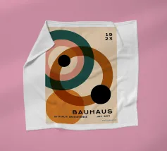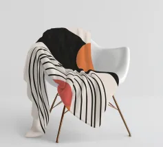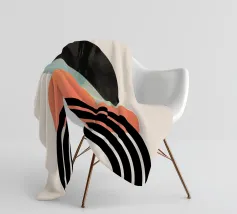 Questo design artistico combina il nero deciso e i toni della terra con le vibranti sfumature del blu e dell'arancione. Le forme geometriche chiare e gli archi creano un fascino moderno e retrò e si adattano perfettamente agli spazi scandinavi o minimalisti. Come murale, cuscino o poster, il motivo crea un accento elegante e aggiunge carattere e calore agli ambienti. Un elemento decorativo unico per gli amanti del design e dell'arte che apprezzano l'estetica moderna.