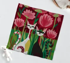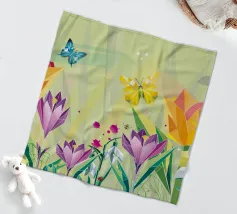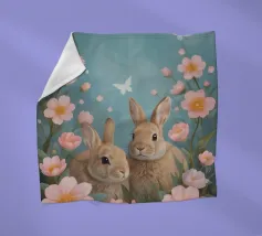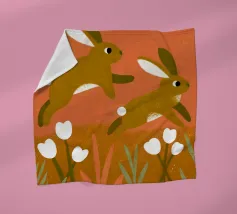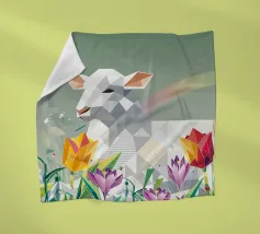Due coniglietti pasquali stilizzati tra fiori colorati, pulcini e farfalle: un motivo allegro in stile poligonale, ideale per il periodo pasquale e l'inizio della primavera. Due coniglietti geometrici come motivo centrale Fiori primaverili colorati e crochi Inclusi simpatici pulcini e farfalle svolazzanti Design moderno e giocoso per la Pasqua Ideale per prodotti stagionali dal sapore primaverile