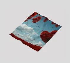 Un escavatore giallo è posizionato accanto a una benna rossa piena di oggetti a forma di cuore, che simboleggiano l'amore. L'ambientazione è caratterizzata da un terreno soffice, che aggiunge un tocco unico al tema di San Valentino.