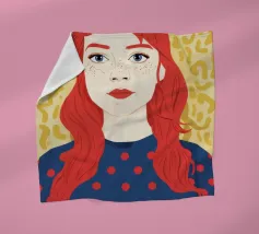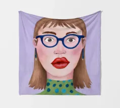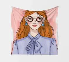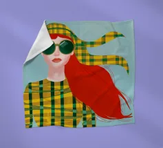 Questo vivace ritratto pop art presenta una rossa sicura di sé che indossa audaci occhiali verdi da gatta e un dolcevita giallo. Il mix di elementi retrò e moderni crea una divertente dichiarazione di intelligenza, stile e impavida individualità.