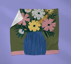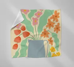 Questo allegro motivo floreale mostra un vaso blu stilizzato pieno di fiori colorati in arancione, rosso, giallo e rosa, incorniciato da una calda tonalità corallo. Il disegno irradia gioia di vivere e armonia ed è perfetto per murales, cuscini, tazze, cover per cellulari e altro ancora. Ideale per chi ama un'estetica fresca e moderna e desidera ravvivare la propria casa con accenti colorati e naturali. Questa composizione floreale senza tempo si adatta a qualsiasi ambiente e a qualsiasi stile di casa.