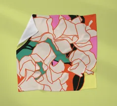 Questa vibrante arte digitale astratta combina colori brillanti e texture glitterate ispirate a motivi botanici. Le strisce orizzontali in rosa, arancione, blu e verde portano nuova energia in ogni spazio abitativo e celebrano la bellezza della natura colorata.