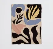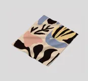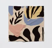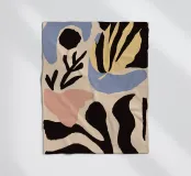 Una composizione astratta sofisticata e minimalista di varie forme di foglie e botaniche in una tavolozza di colori chic e tenui. L'opera d'arte è moderna, elegante e ha un'atmosfera organica e rilassante.