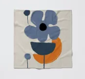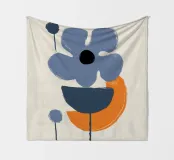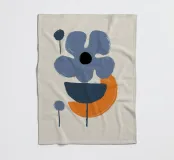 Una composizione minimalista e sofisticata presenta due fiori blu stilizzati su steli eleganti su uno sfondo neutro e colorato, incarnando il principio del "meno รจ meglio".