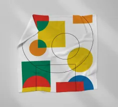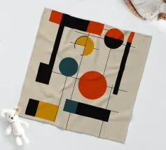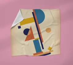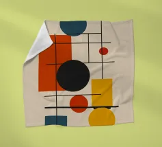 L'opera d'arte presenta una disposizione dinamica di forme geometriche dai colori vivaci. Cerchi, rettangoli e linee si intrecciano, creando un senso di movimento ed equilibrio.