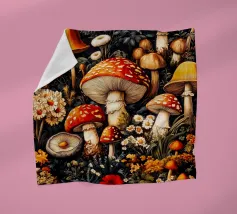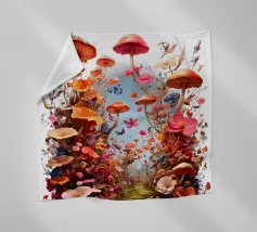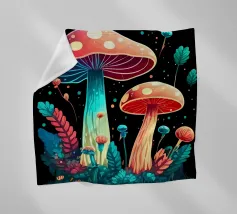 Un motivo affascinante mostra un paesaggio surreale di funghi luminosi che spuntano da uno sfondo colorato e vorticoso nelle vibranti tonalità del giallo, dell'arancione e del rosso. Le forme dei funghi appaiono organiche e ultraterrene allo stesso tempo, mentre le linee fluide e i colori ricchi creano un mondo da sogno psichedelico. La scena ricorda un viaggio fantastico in un universo alieno pieno di energia luminosa e forme mistiche: un invito visivo a meravigliarsi e a immergersi in altre dimensioni.