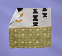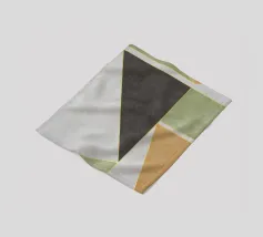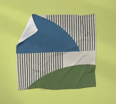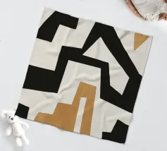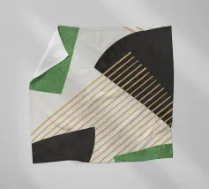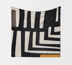I motivi geometrici dominano l'immagine, con linee nere verticali su sfondo bianco. Varie forme, tra cui triangoli e rettangoli, si alternano per creare un senso di equilibrio e simmetria.