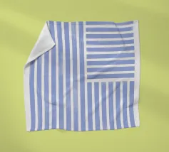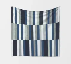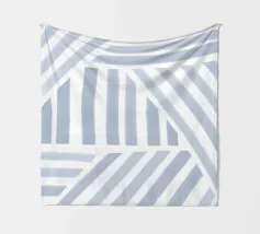 Disegno astratto con sezioni di linee bianche diagonali e verticali su sfondo azzurro, che creano un motivo geometrico dinamico. Ideale per progetti di arredamento moderno e design grafico.