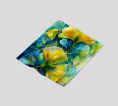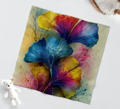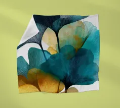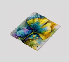 Composizione con fotografia di foglie di ginkgo biloba