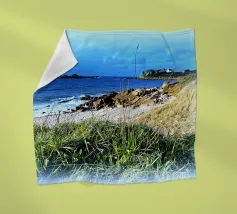 Questa splendida fotografia cattura un sereno paesaggio costiero. Perfetta per gli appassionati di natura e per coloro che apprezzano la tranquilla bellezza degli ambienti costieri, questa immagine conferisce un senso di pace e di splendore naturale a qualsiasi spazio.