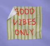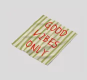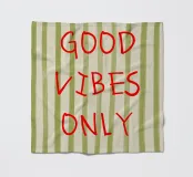Un messaggio luminoso ed edificante per una casa felice. Questa scritta a mano riporta la classica frase "GOOD VIBES ONLY" su un allegro sfondo a righe.