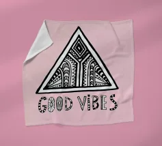 good vibes art, design arcobaleno rosa, estetica retrò, grafica allegra, messaggio edificante, stile minimalista colorato