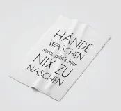 Questo design porta l'igiene con umorismo: "Lavati le mani, altrimenti qui non c'è niente da mangiare". Tipografia chiara, formulata in modo sfacciato e ideale per la cucina, l'ufficio, l'asilo nido o lo studio.