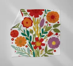 Questa illustrazione floreale dai toni caldi irradia la freschezza della primavera e l'arrivo di giornate più calde. Ispirata ai fiori di campo, offre un'atmosfera allegra e vivace, con toni morbidi di rosso, arancio e giallo, che ricordano il primo risveglio della natura.