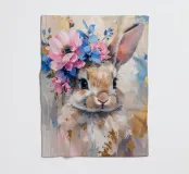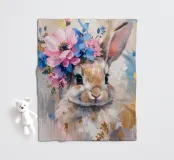 Questo design moderno presenta un simpatico coniglio con fiori sulla testa. Disegnato con delicati acquerelli e accenti dorati, unisce la bellezza naturale all'eleganza artistica. Le morbide sfumature di colore e lo stile astratto conferiscono a qualsiasi ambiente un'atmosfera romantica e giocosa, ma allo stesso tempo elegante: un vero e proprio colpo d'occhio per la vostra casa.