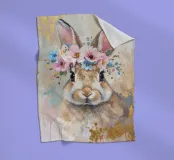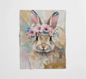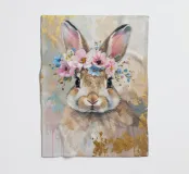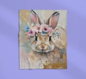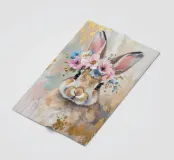 Questo design moderno presenta un simpatico coniglio con fiori sulla testa. Disegnato con delicati acquerelli e accenti dorati, unisce la bellezza naturale all'eleganza artistica. Le morbide sfumature di colore e lo stile astratto conferiscono a qualsiasi ambiente un'atmosfera romantica e giocosa, ma allo stesso tempo elegante: un vero e proprio colpo d'occhio per la vostra casa.