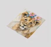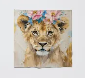 Questo moderno disegno raffigura un grazioso leoncino con fiori sulla testa. Disegnato con delicati acquerelli e accenti dorati, unisce la bellezza naturale all'eleganza artistica. Le morbide sfumature di colore e lo stile astratto conferiscono a qualsiasi ambiente un'atmosfera romantica e giocosa, ma allo stesso tempo elegante: un vero e proprio colpo d'occhio per la vostra casa.