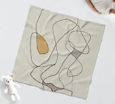 Un insieme di forme astratte nei toni della terra sovrapposte a linee sottili e scure crea un design moderno e minimalista. La composizione è calma ed equilibrata e l'uso dello spazio negativo contribuisce alla semplicità complessiva.
