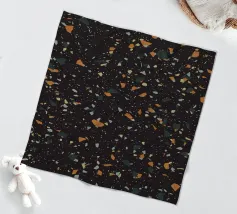 Quest'opera d'arte è un vivace motivo ispirato al terrazzo, caratterizzato da una serie di frammenti di forma irregolare nei toni del verde acqua, del bianco e del grigio, accentuati da punte di arancione e giallo caldo. I pezzi sparsi sono collocati su uno sfondo verde menta, creando una composizione armoniosa e dinamica. Il design evoca un senso di modernità e giocosità, fondendo forme organiche con un'estetica pulita e contemporanea. Perfetto per l'interior design, i tessuti e le applicazioni digitali, questo pezzo cattura il fascino senza tempo del terrazzo con un tocco artistico e fresco.