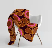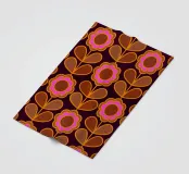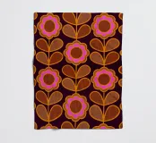 Fate una dichiarazione con questo audace motivo floreale mid-mod. Margherite astratte su steli frondosi sono reimmaginate in uno stile grafico retrò, con accenti rosa, marrone terra e ocra su uno sfondo viola intenso.