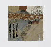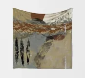 Moderna opera d'arte astratta con forme, linee e texture nei caldi toni della terra: marrone, ruggine, grigio e beige. Un'atmosfera rustica per uno stile di vita o un interno new country, bohémien e moderno. Adatto per uno studio, un soggiorno, un corridoio e una camera da letto.