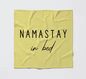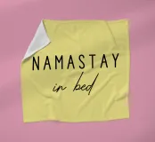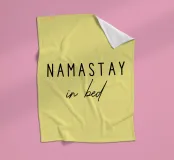 Aggiungete umorismo e relax al vostro arredamento con questa stampa "Namastay In Bed". Perfetta per le camere da letto, i dormitori o gli amanti dello yoga con un lato giocoso.