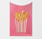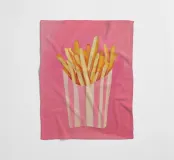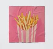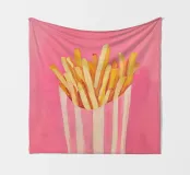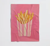 Questa affascinante illustrazione di patatine fritte in una scatola a righe pastello cattura l'aspetto nostalgico e retrò del popolare snack. Con pennellate morbide e un'armoniosa tavolozza di colori rosa, l'opera trasmette una cultura alimentare giocosa e trasforma il fast food in arte culinaria creativa.