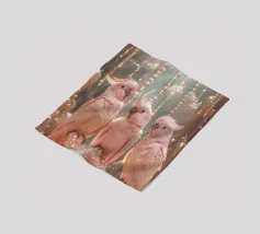 Due pappagallini si accoccolano l'uno all'altro su un'amaca in mezzo al verde. Le loro teste sono leggermente inclinate, come se sussurrassero segretamente che, dopo tutto, questo è davvero il posto migliore del mondo. Perfetto per chiunque voglia portare un po' di allegria e amore nella propria casa.