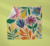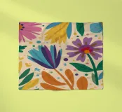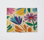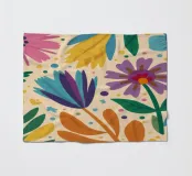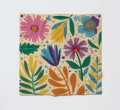 Una bella macchia di fiori selvatici stilizzati e stravaganti è illustrata in un affascinante stile ispirato all'arte popolare, con un delizioso mix di colori e forme che irradiano gioia e bellezza naturale.