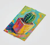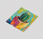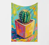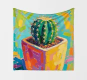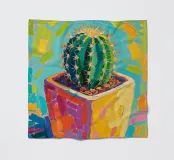Piccolo cactus in vaso a forma di cubo con pittura fauvismo stile arte