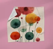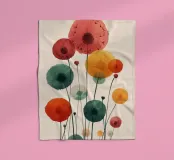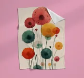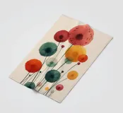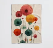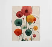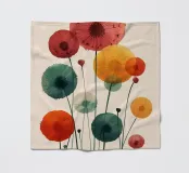 Una composizione poetica di fiori di dente di leone sovradimensionati, dipinti con texture giocose ad acquerello. L'opera d'arte mescola arancioni caldi, rossi intensi, gialli dorati e verdi tenui su uno sfondo chiaro, evocando un senso di ottimismo, leggerezza e gioiosa nostalgia. Perfetta come elemento di spicco per salotti, studi creativi o interni moderni e luminosi, questa illustrazione celebra le forme stravaganti della natura in uno stile contemporaneo e astratto.
