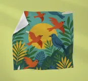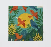 Immergetevi in un'atmosfera tropicale con questo poster Uccelli e sole turchese. Uccelli colorati volano sopra un sole splendente, in un contesto di piante rigogliose. Un poster vintage perfetto per dare un'atmosfera fresca ed esotica alla vostra casa.