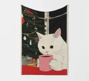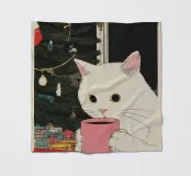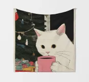 Questa bevanda nella tazza da caffè è vino caldo? Questa bevanda sembra molto invitante, ma fate in fretta o questo simpatico ed elegante gatto bianco giapponese berrà tutto il vino in un sorso, per celebrare questa accogliente notte invernale.