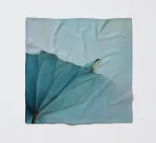 Questa opera d'arte mostra una piccola rana tropicale seduta sul bordo di una grande foglia blu. I tenui colori pastello e lo sfondo minimalista conferiscono all'immagine un senso di calma e leggerezza. Un motivo naturalistico moderno che unisce esotismo ed eleganza.