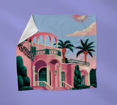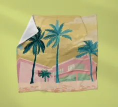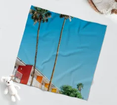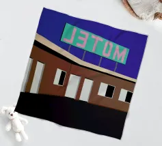 Una classica insegna retrò "MOTEL" risplende contro un cielo serale blu intenso, affiancata da palme in primo piano. L'immagine cattura un'atmosfera nostalgica e cinematografica che ricorda un classico viaggio americano in macchina.