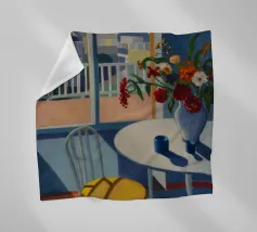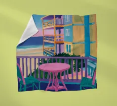 Un balcone assolato reso con luci e ombre drammatiche, dove il silenzio parla più delle parole grazie a una composizione minimalista.