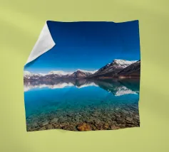 Un cielo azzurro e limpido si riflette perfettamente in un lago sereno circondato da maestose montagne innevate. Questa splendida scena cattura l'essenza della bellezza e della tranquillità della natura.