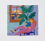Una donna in posa rilassata si sdraia su una sedia accanto a una grande finestra, godendosi il caldo bagliore del sole al tramonto. La scena è quella di una pacifica solitudine e appagamento, immersa nella splendida luce dell'ora d'oro.