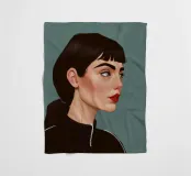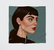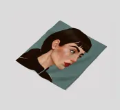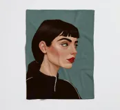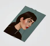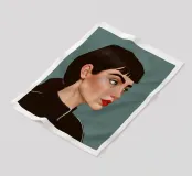 Il ritratto intenso e suggestivo di una donna con capelli scuri, occhi penetranti e un audace rossetto rosso รจ reso in uno stile pulito, moderno e realistico, che cattura uno sguardo di tranquilla forza e sicurezza.